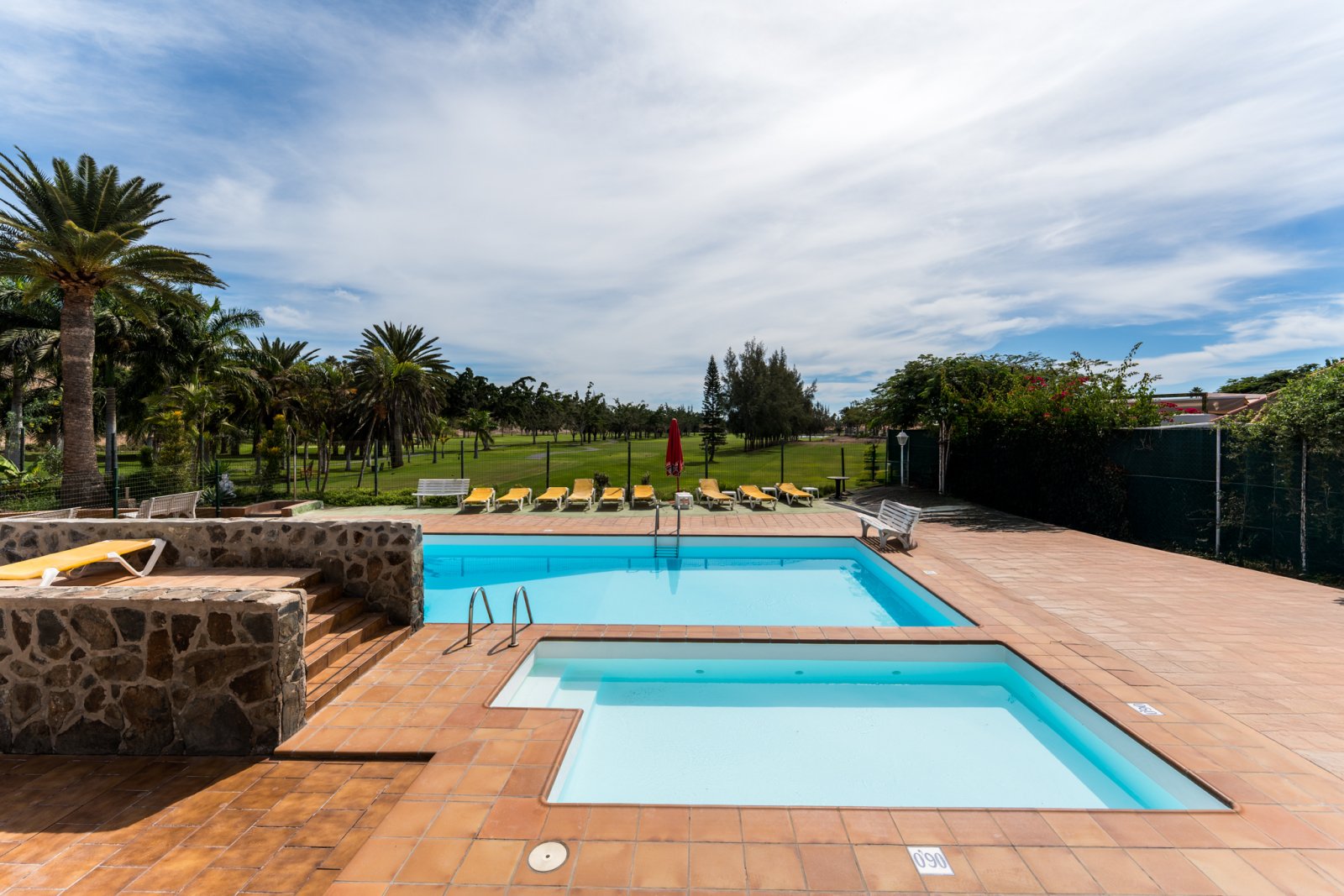Dieser Loft Bungalow liegt in einer kleinen privaten Anlage mit Pool direkt am Golfplatz von Maspalomas. Absolute Ruhelage.