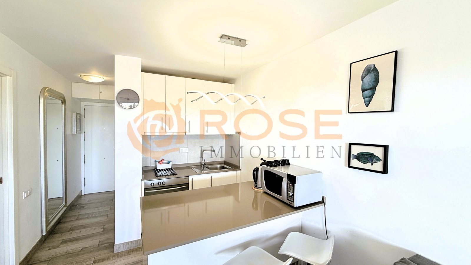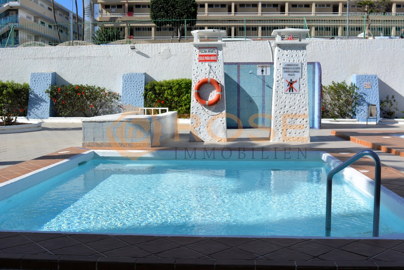 Rose Immobilien - Your real estate agent in Gran Canaria presents this sea view apartment in the popular and centrally located apartment building Tinache, right in the high-yield YUMBO zone. Only 10 minutes to the beach promenade and just a short distance to CC Cita and the entrance to the dunes of Maspalomas. The apartment building features a large renovated swimming pool with sun loungers and two elevators. The apartment is located on the top floor. Table tennis table.