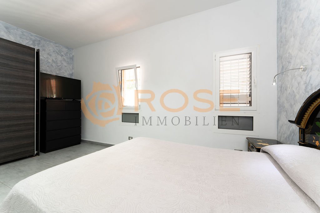 Rose Immobilien - Su agente inmobiliario en Gran Canaria le presenta exclusivamente este espacioso bungalow (180 m² de superficie útil) con una gran cantidad de espacio, 4 dormitorios, terraza en la azotea y un garaje cerrado. Piscina comunitaria muy bien cuidada en una pequeña urbanización muy privada.